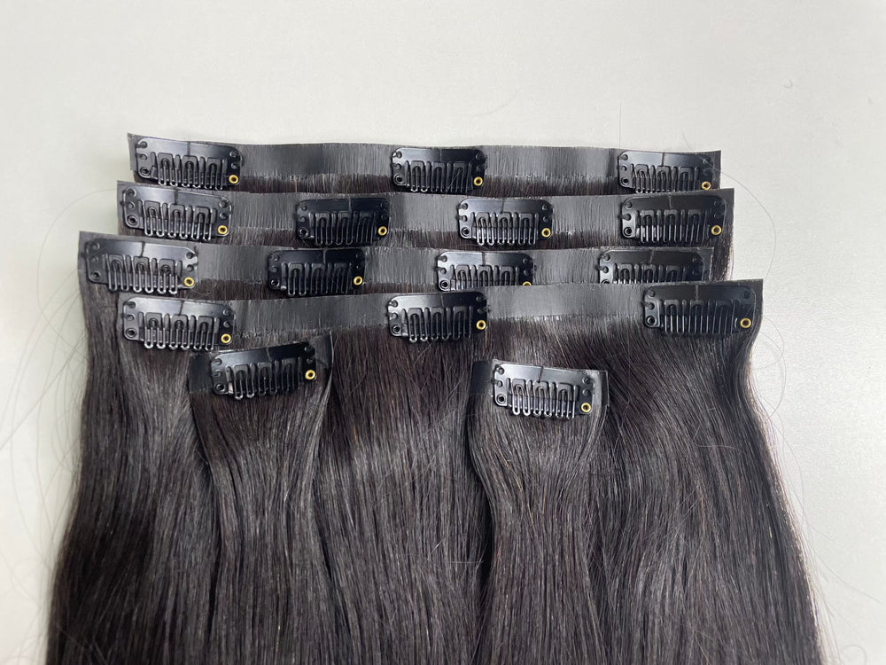 The Seam of these clip-ins are flat and thin, resulting in an extremely non-detectable, seamless install. Each clip-in pack is full from root to tip and sourced from a single donor resulting in minimal shedding and tangling.